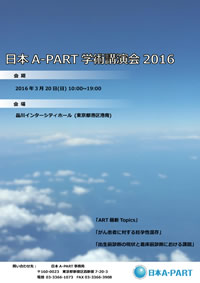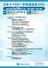 2020年3月22日(日)の日本A-PART学術講演会および3月21日(土)ワークショップの開催ですが、新型コロナウイルス感染拡大のため中止とさせていただきます。